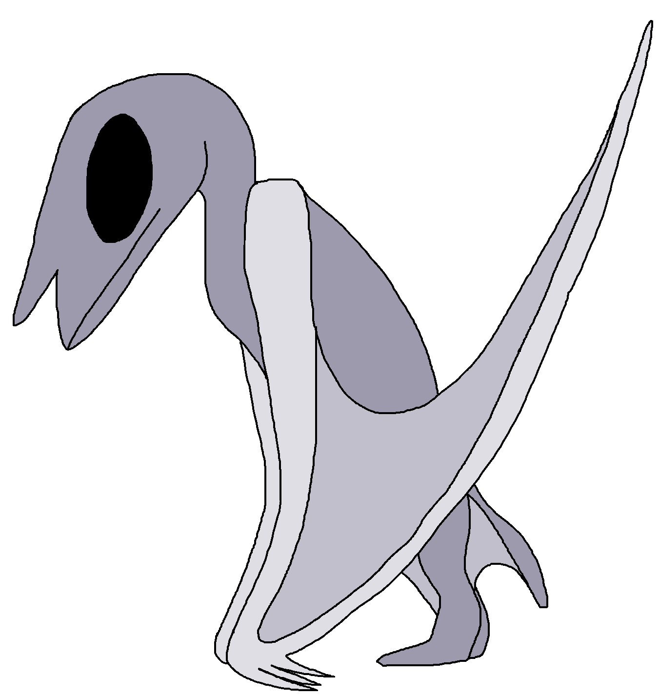 The creature holds many resemblences to a Pterosaur: a large reptilian creature with a stubby tail, large leathery wings, and a bird-like beak. It also has a horn-like protrusion right above its mouth, and a set of large alien eyes.