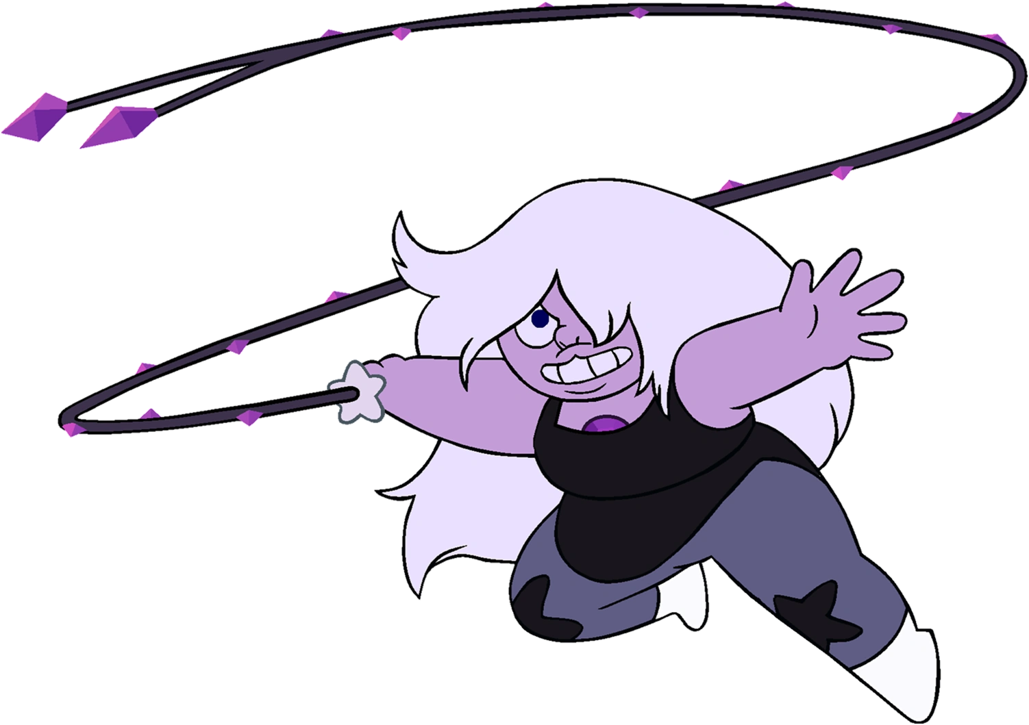 Sometime later, she ended up captured by White Diamond and put under custody and imprisonment until she ended up freed by the Humans, only to be apprehended again by Aquamarine. As White Diamond explained her motives, she brought up how humans are no different to them, to which Amethyst promptly corrected, saying that they may fight and argue, but they're nothing compared to her, and she will not stand by for her sick and twisted ways, even if it risked another Gem War. When she got out, she took to the fight following, and used Soup's pot to reflect some Robonoid lasers, and once they managed to get pass the back doors, she and Steven wiped out the competition in a combined attack. Upon cutting the power, she managed to escape with the rest of the Gems.