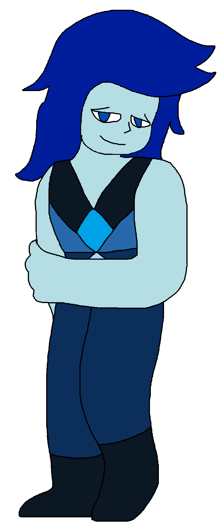 She is a medium-sized Gem, about the same height at Red Pearl. She has a slightly pointed nose with a relaxed expression on her face. Her eyes and hair share a deep blue color, her hair spiked along the top and poofy along the sides.