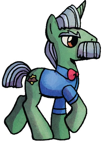 By The Book is a middle-aged Unicorn Pony in charge of the police department for Fillydelphia.