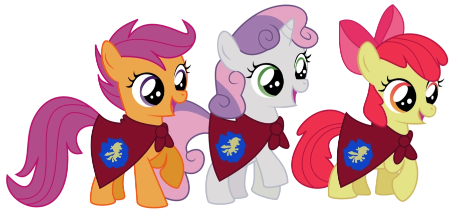 The Cutie Mark Crusaders is a club made thanks to Apple Bloom, Sweetie Belle, and Scootaloo, with the main goal of all three earning their Cutie Marks. Their clubhouse is located within Sweet Apple Acres.