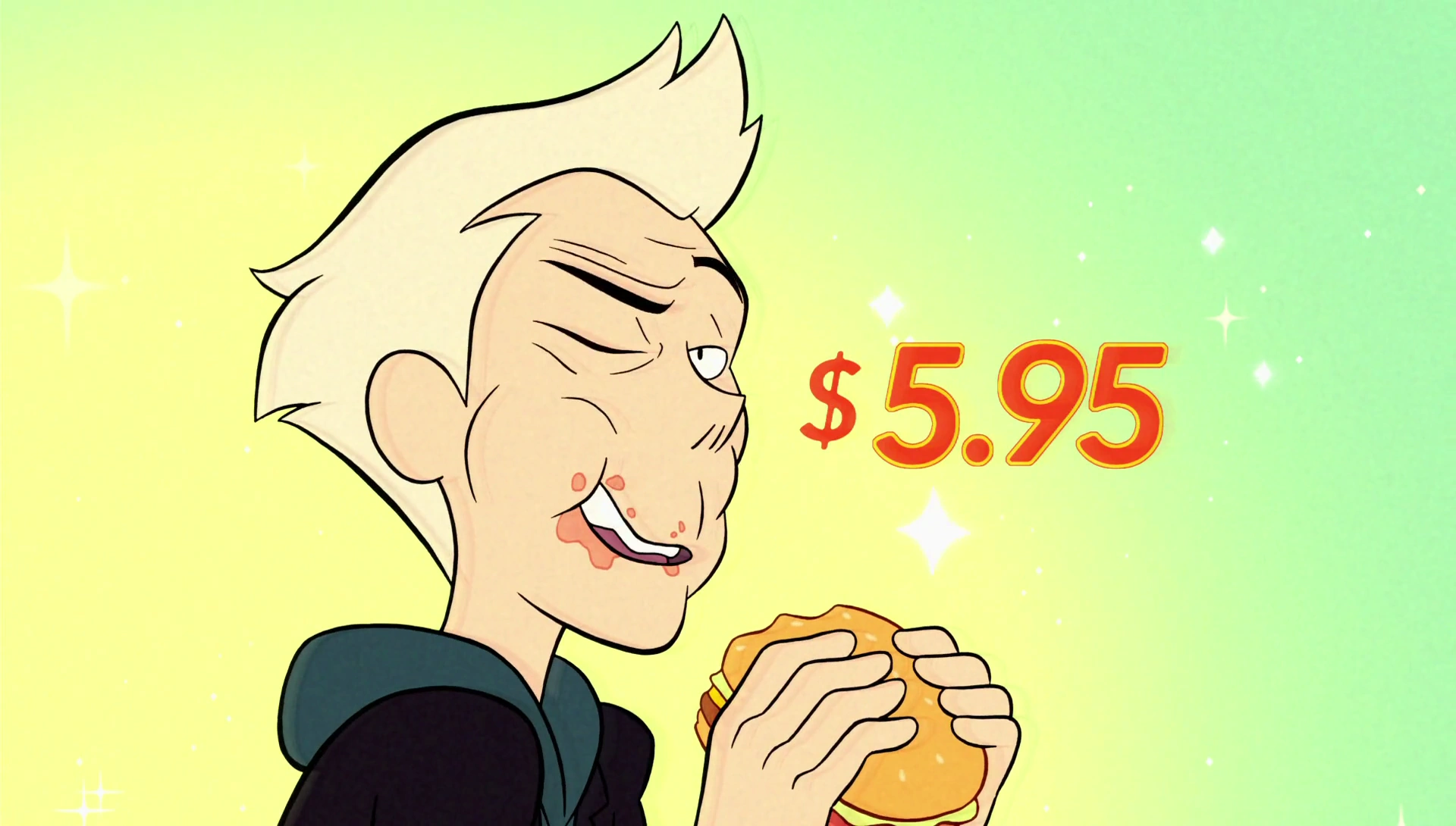 In Diamonds in the Rough, He appears in an old TV commercial ad for Pepe's Burgers, using one of Greg's songs as part of the theme song. Greg is given 10,000,000 dollars due to his copyright over the music used.