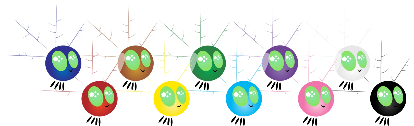 Parasprites are very small, about the same size as mice. Their bodies resembled colorful balls, with a set of insect-like wings, and two large rounded eyes. They come in a multitude of colors.