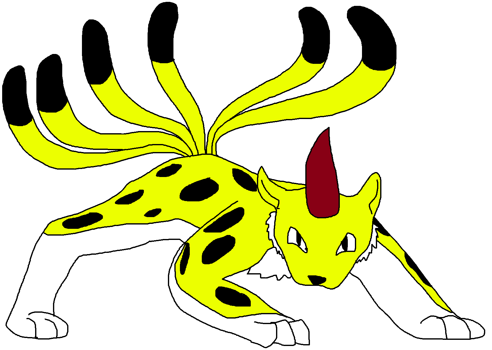 Prior to her transformation she looked no different from any normal Jaguar. After transforming into a Zheng though, her fur turned red, and she gains multiple tails and a horn.